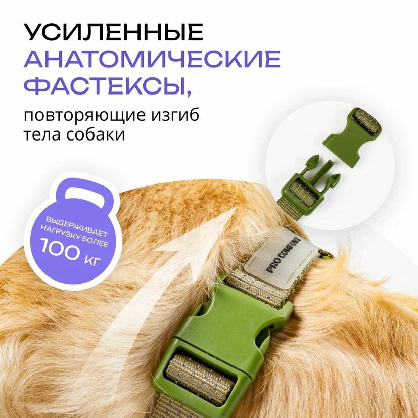 СохранитьШлейка для собак средних и крупных пород анатомическая размер L, хаки, PRO COMFORT интересное: