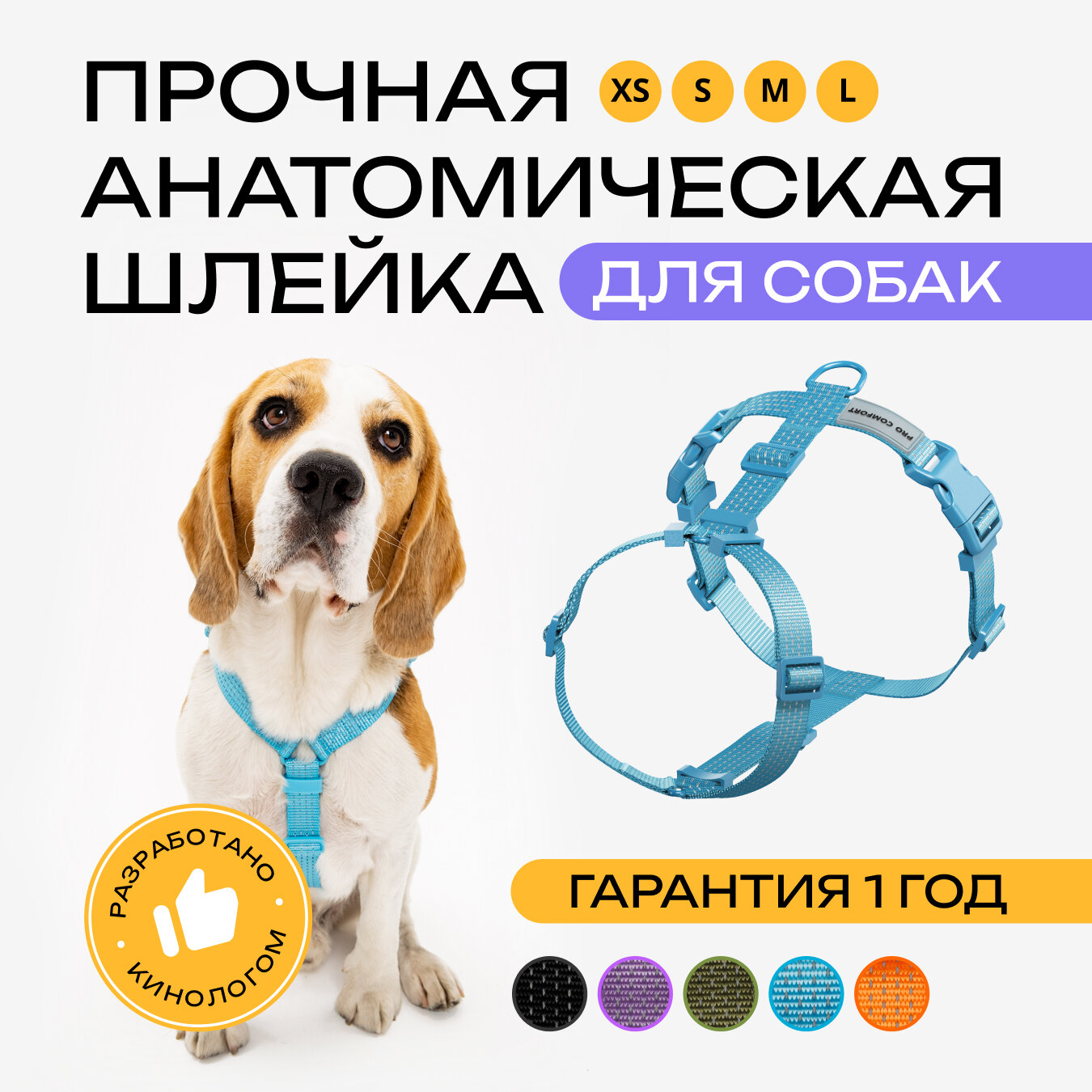 Шлейка для собак средних и крупных пород анатомическая размер М, Голубая, PRO COMFORT