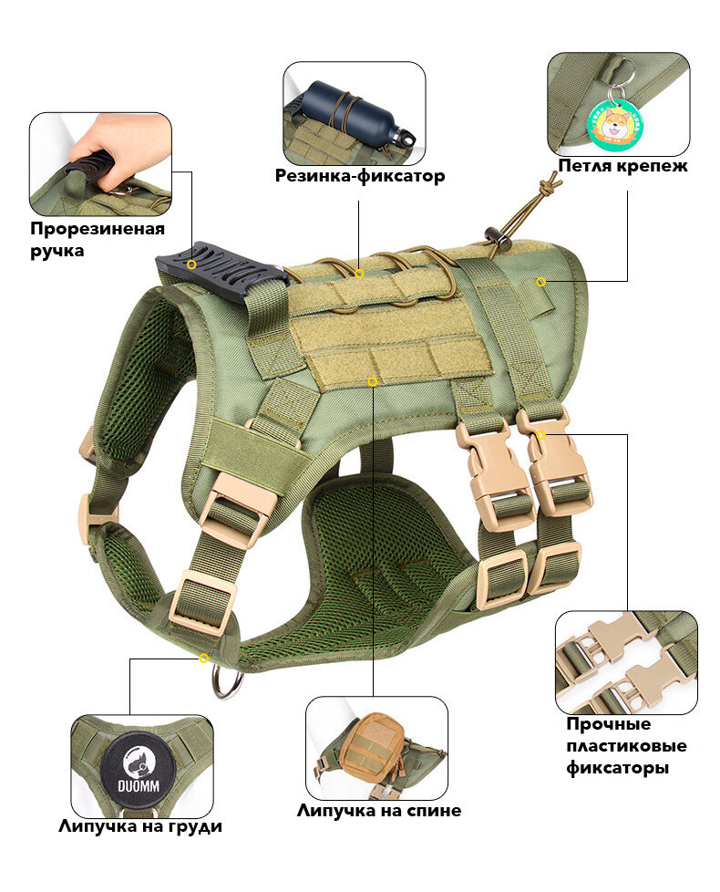 Шлейка тактическая для собак средних, крупных пород, Зелёная, L интересное: