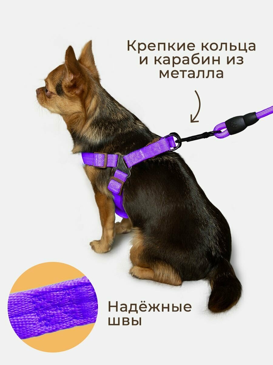 Шлейка MiloPets для собак и кошек, с поводком 120 см, обхват груди XL 53-70 см, фиолетовый интересное: