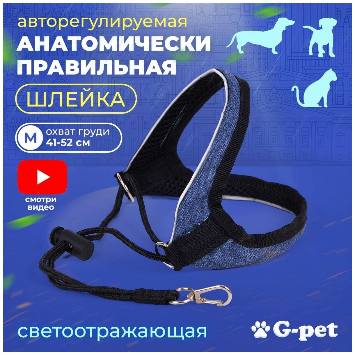 Купить Авторегулируемая шлейка для мелких пород собак и кошек G-pet синий меланж M (40-52 см) для кота, мейн кун, шпица, мопса, таксы, джек рассел терьера