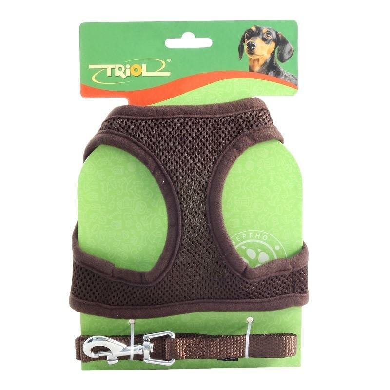 Triol HL03S комплект мягкая шлейка-жилетка и поводок обхват груди 350 мм., поводок 15*1200 мм., Коричневый