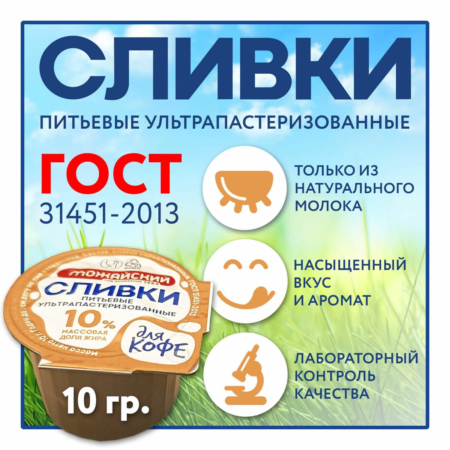Сливки натуральные по ГОСТ (50 шт.) - порционные для кофе 10%, бзмж интересное: