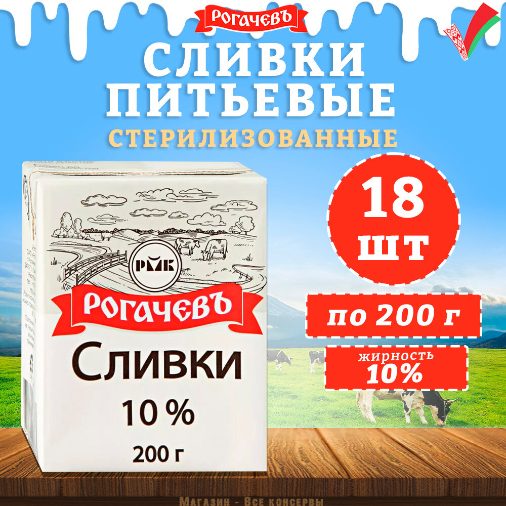 Сливки питьевые стерилизованное, 10%, Рогачев, 18 шт. по 200 г интересное: