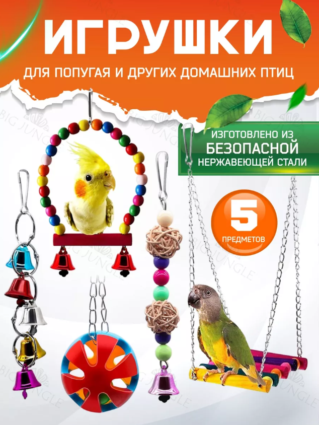 Набор игрушек для попугая и птиц в клетку интересное: