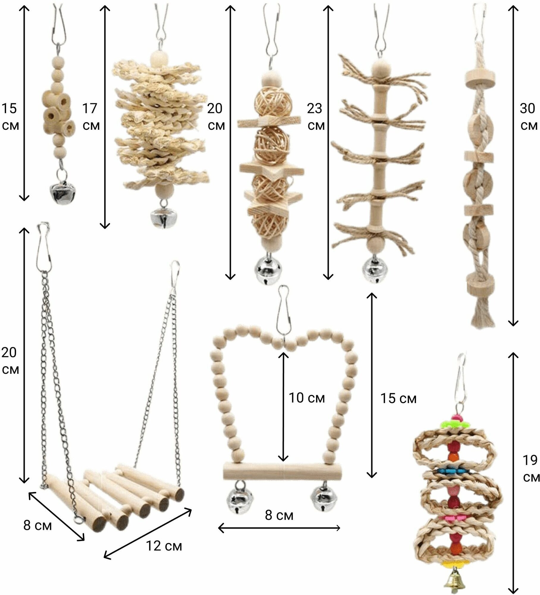 Игрушки для попугаев. Набор из 8 игрушек