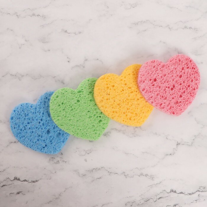 Купить Спонж для умывания «Сердце», 8,5 × 7,5 см, цвет микс(3 шт.)
