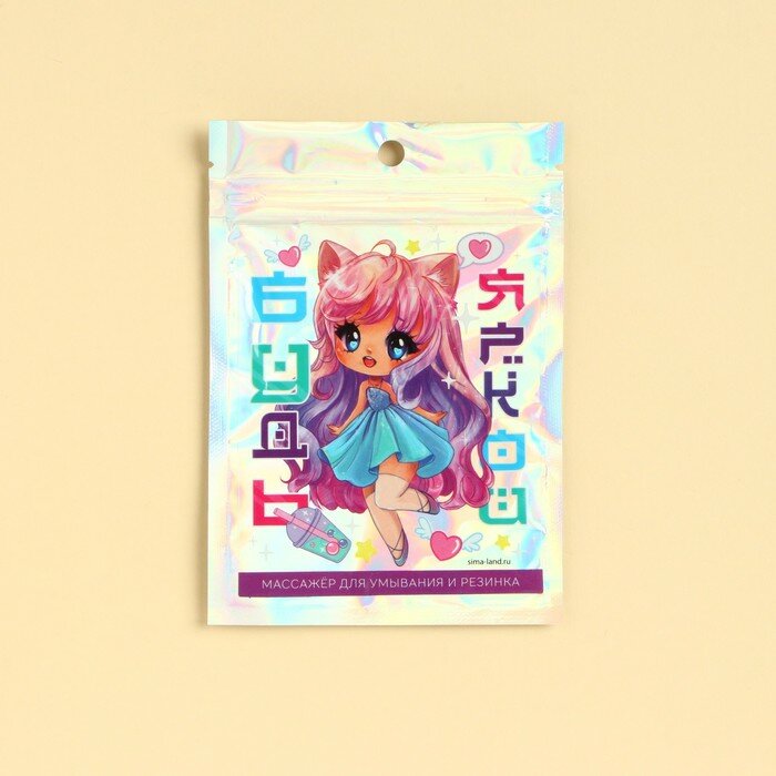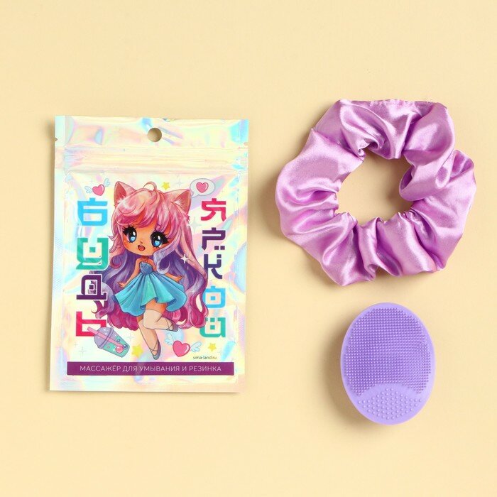 Спонж щёточка для умывания и резинка для волос «Милашка чиби», 10.5 х 15 см, 2 штуки интересное: