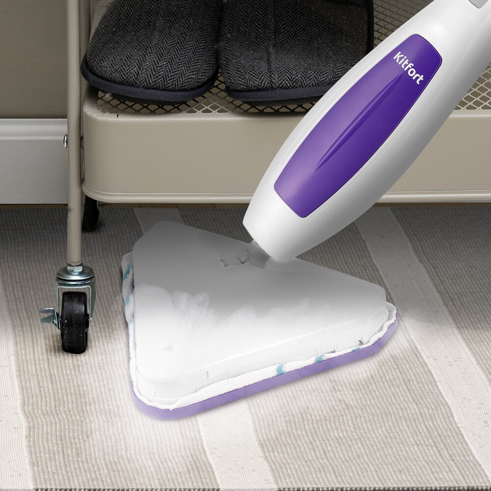Купить Паровая швабра Kitfort KT-1056, 1300 Вт, 450 мл, шнур 4.7 м, бело-фиолетовая