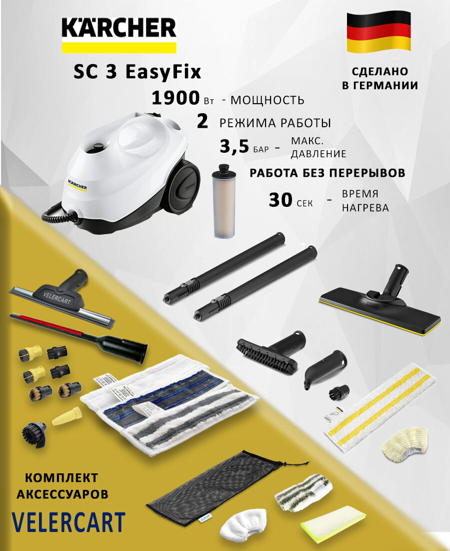 Купить Пароочиститель Karcher SC 3 AE c большим наборов аксессуаров VELERCART