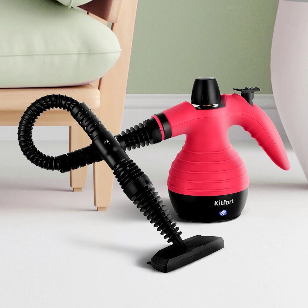 Пароочиститель ручной Kitfort КТ-9193-1 1050Вт черный/малиновый интересное: