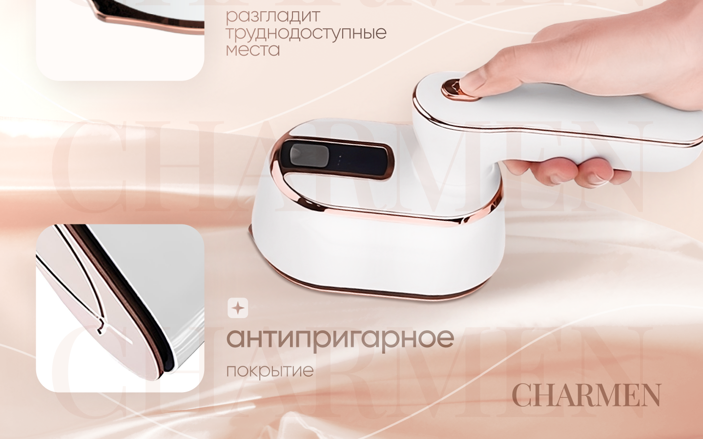 Отпариватель ручной CharmeN для одежды вертикальный мощный, утюг с антипригарным покрытием