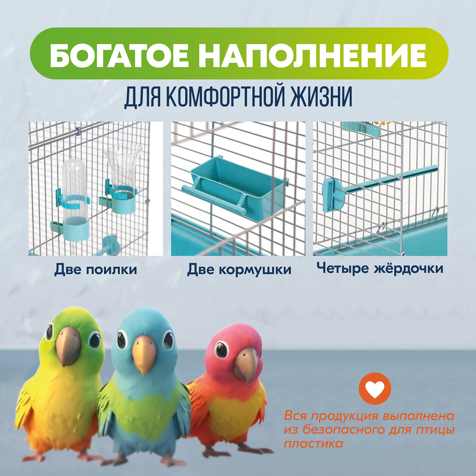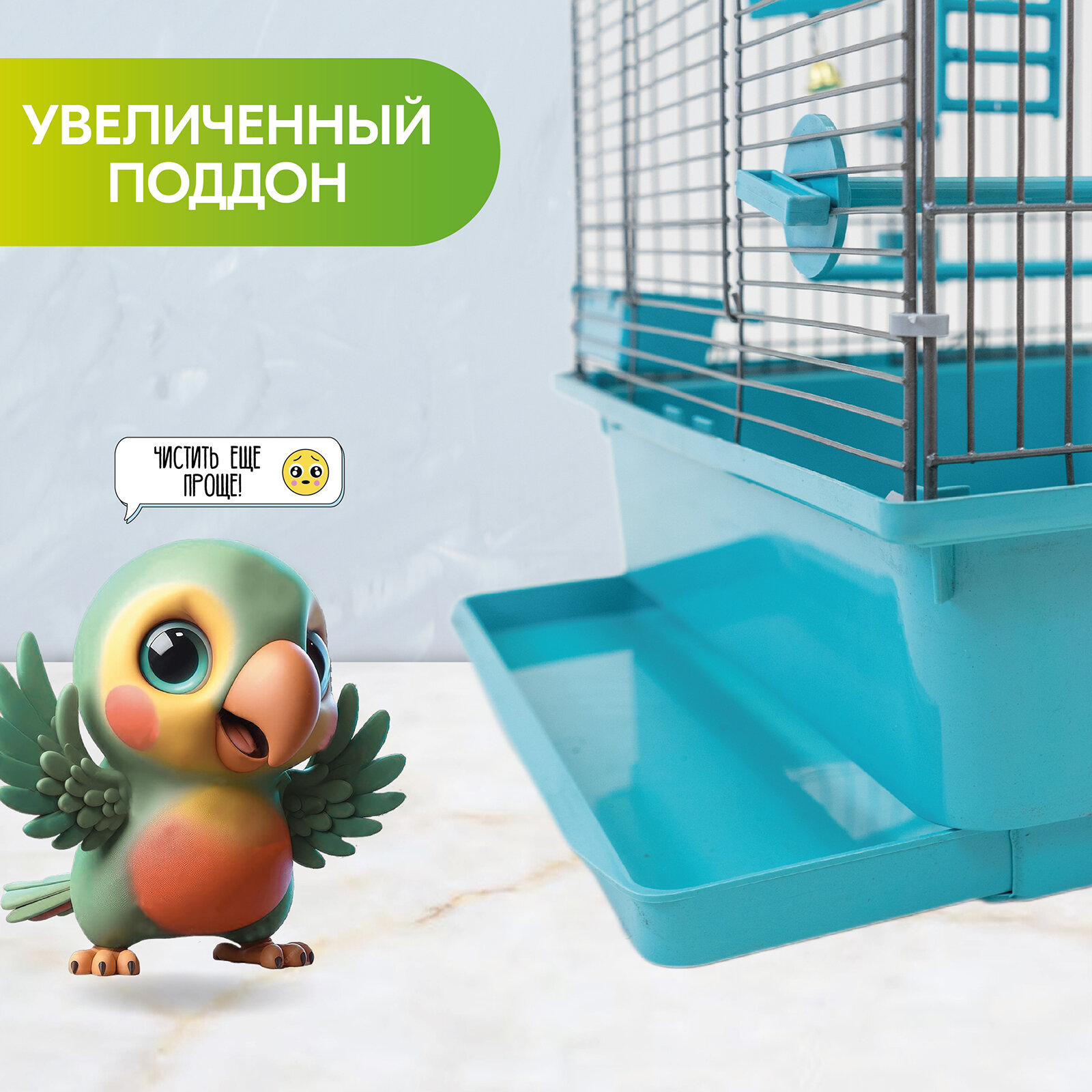 Клетка для птиц разборная "PetTails", шаг прута до 11мм, 42*30*h37см, бирюзовая