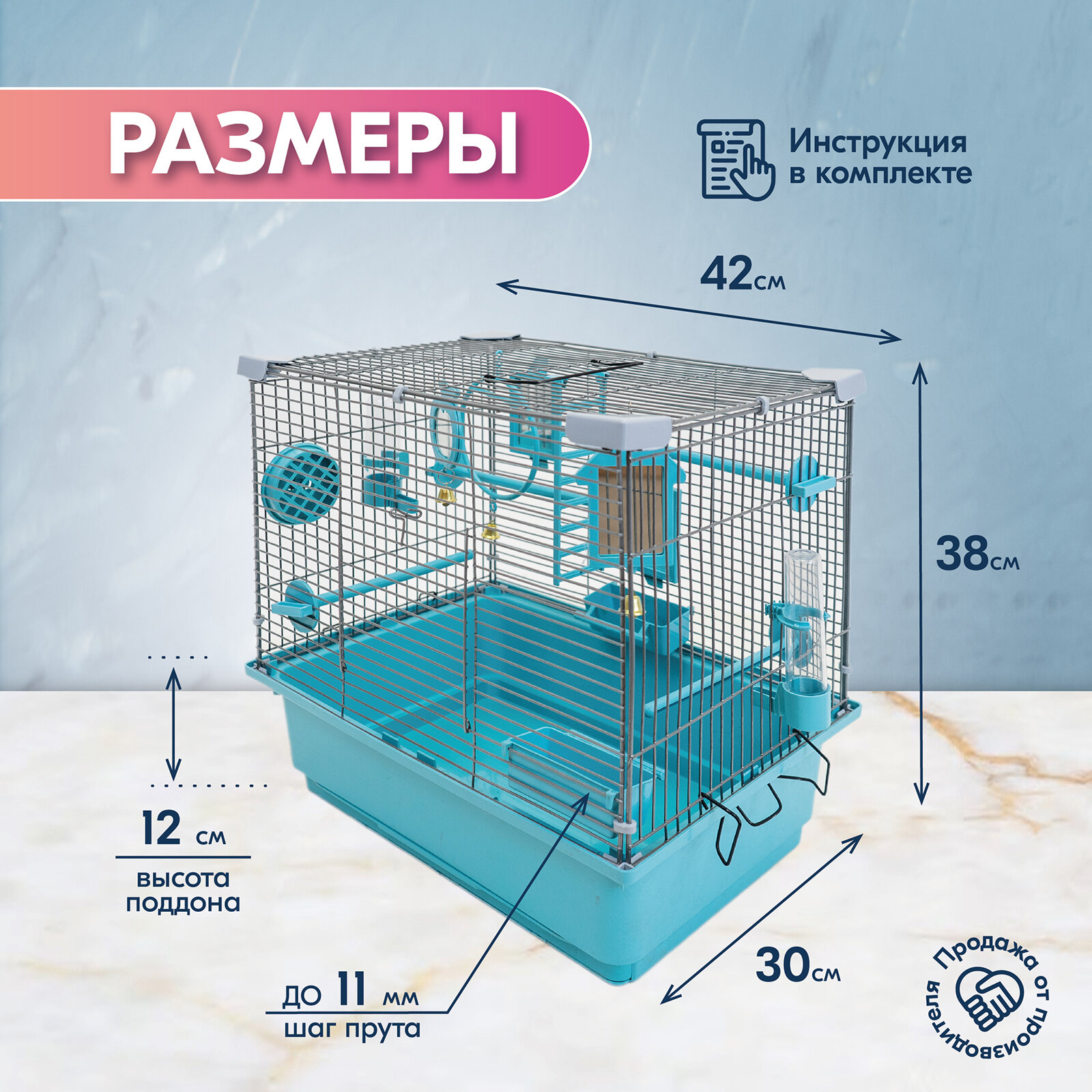 СохранитьКлетка для птиц разборная "PetTails", шаг прута до 11мм, 42*30*h38см, бирюзовая интересное: