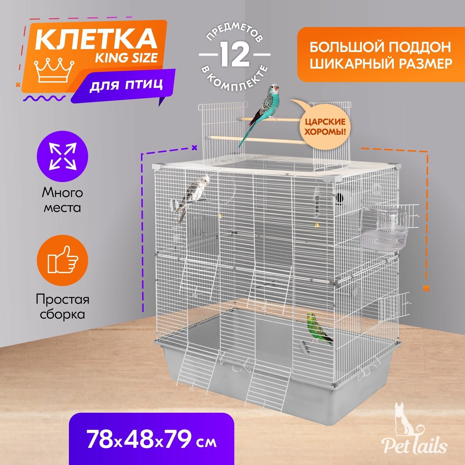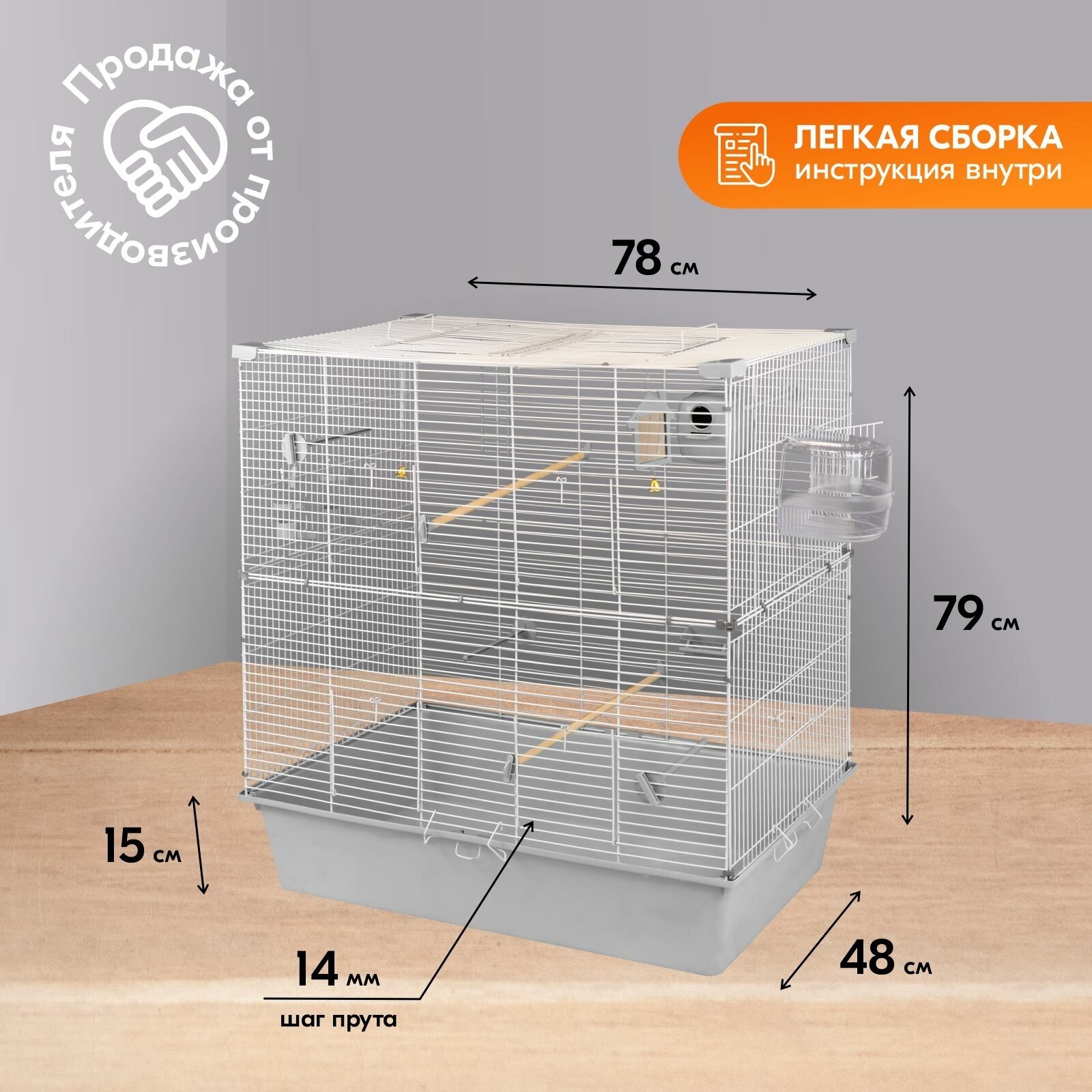 Клетка для птиц "PetTails" ДЭММИ-2 разборн., шаг прута до 14мм, 78*48*h79см (укомплект.) светло-серая интересное: