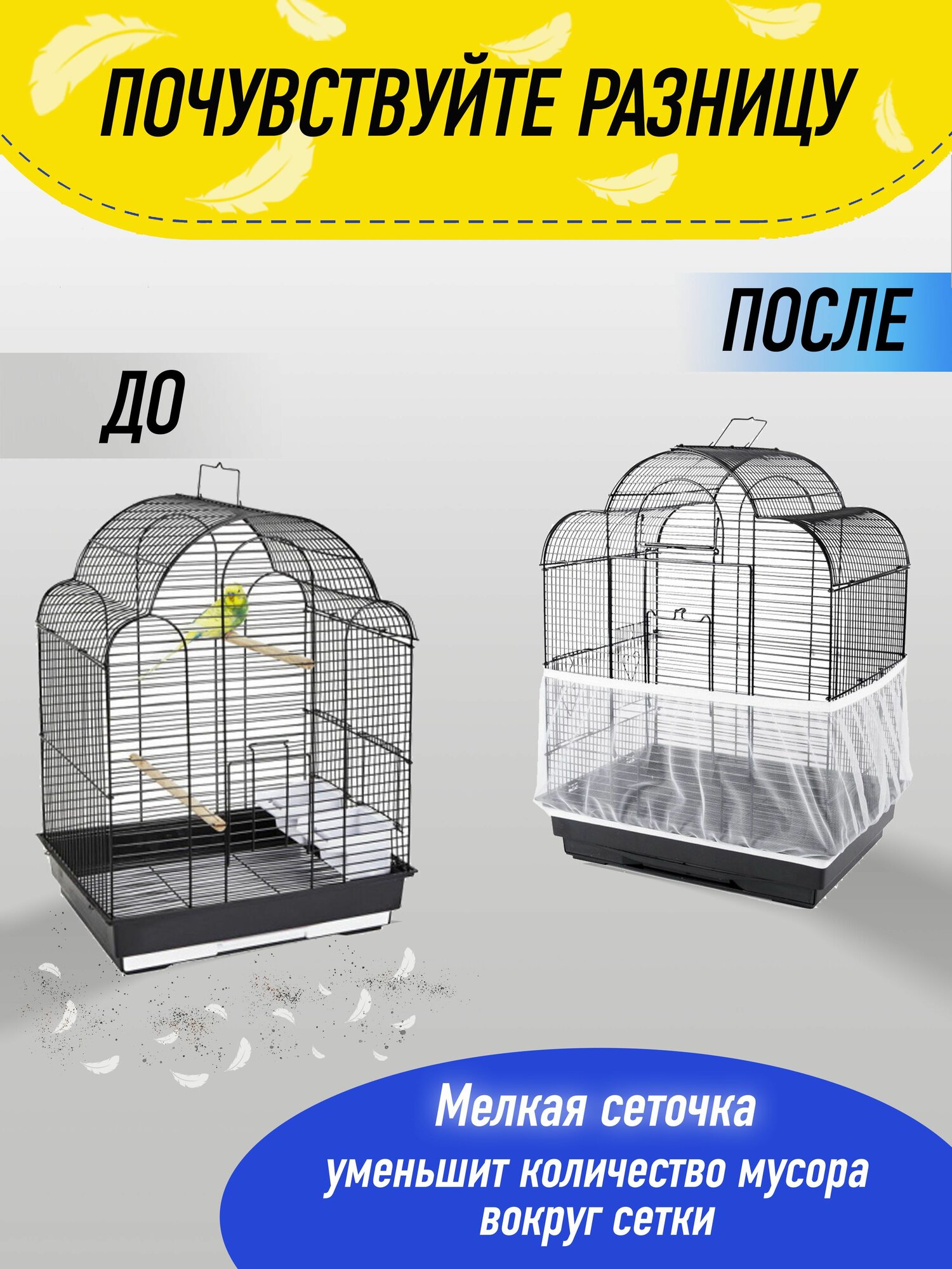 Сетка на клетку для попугаев / Универсальная дышащая / регулируемый размер интересное: