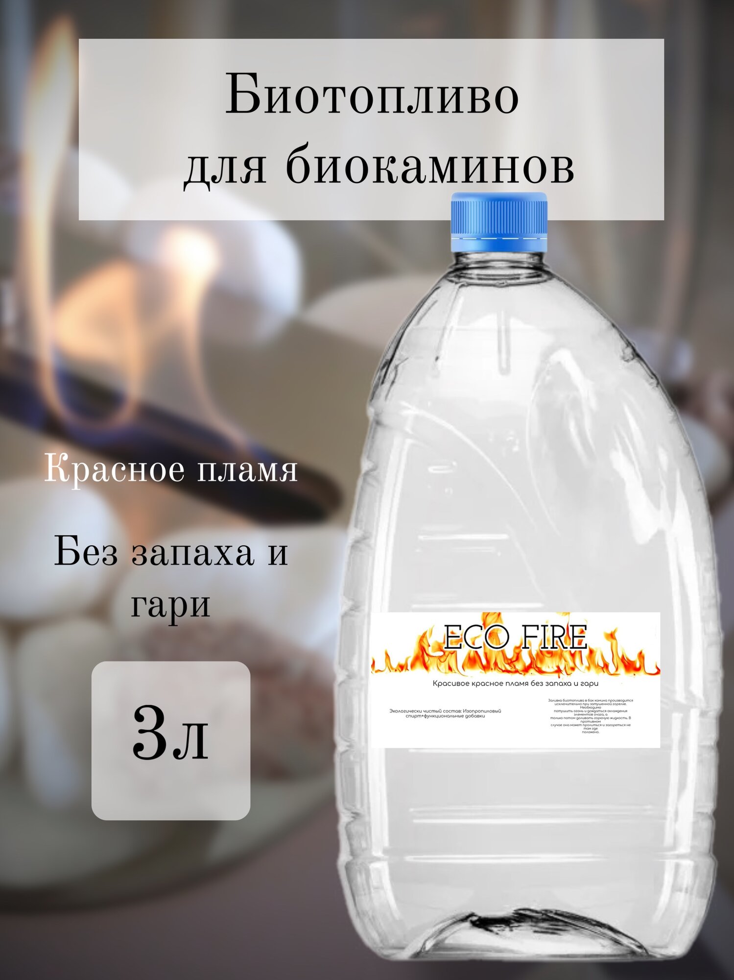 Экопламя Биотопливо для биокамина без запаха, топливо для камина ЭКО пламя 1 литр