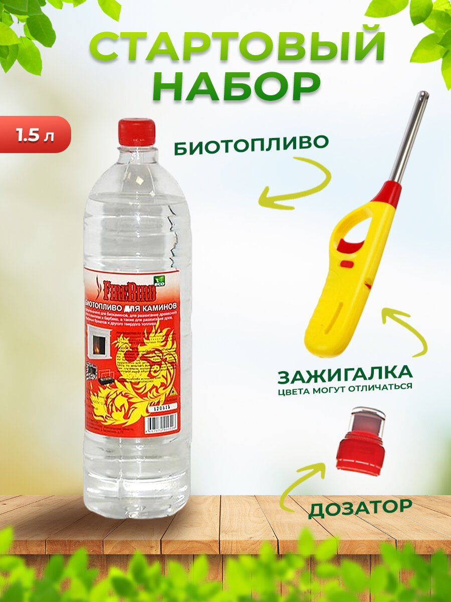 Стартовый набор для биокаминов FireBird, в комплекте биотопливо 1.5 л, и зажигалка интересное: