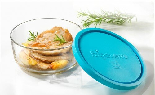 Контейнер стеклянный D.12 FRIGOVERRE Bormioli Rocco круглый с голубой крышкой для хранения продуктов 450мл