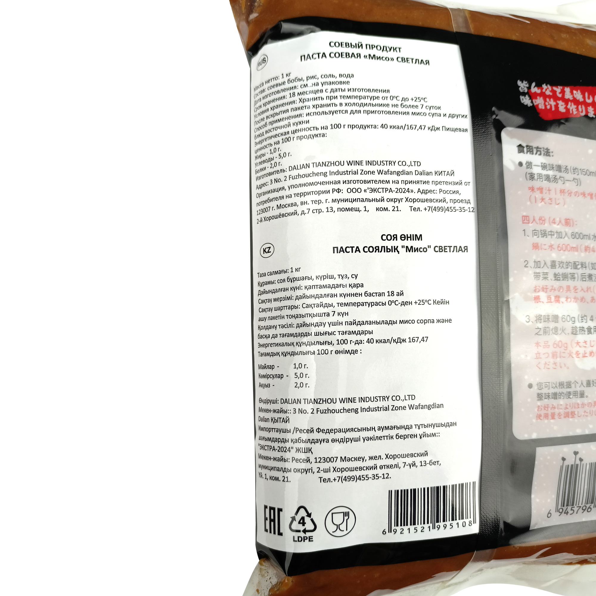 | Состав | соевые бобы, рис, соль, вода |