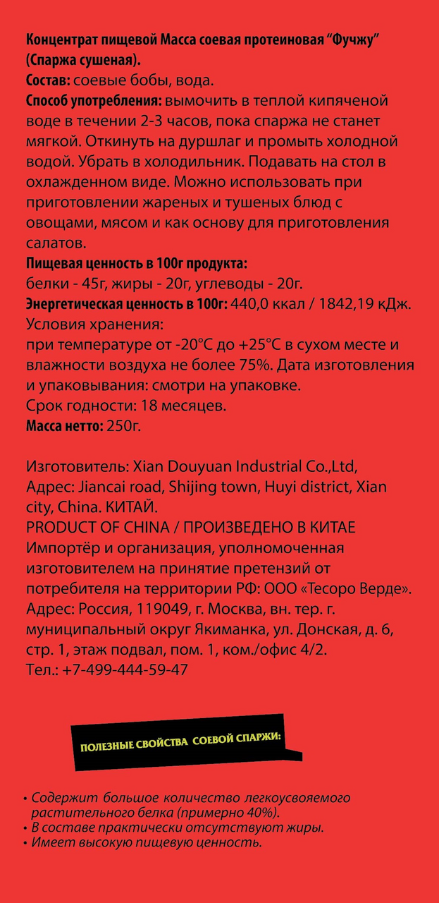 Спаржа соевая сушеная Фучжу 500 гр