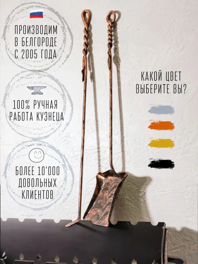 Каминный набор кованый "Росток" цвет: медный/ набор для камина (кочерга, совок)/ набор принадлежностей для камина/ набор для мангала интересное: