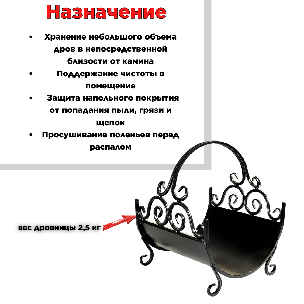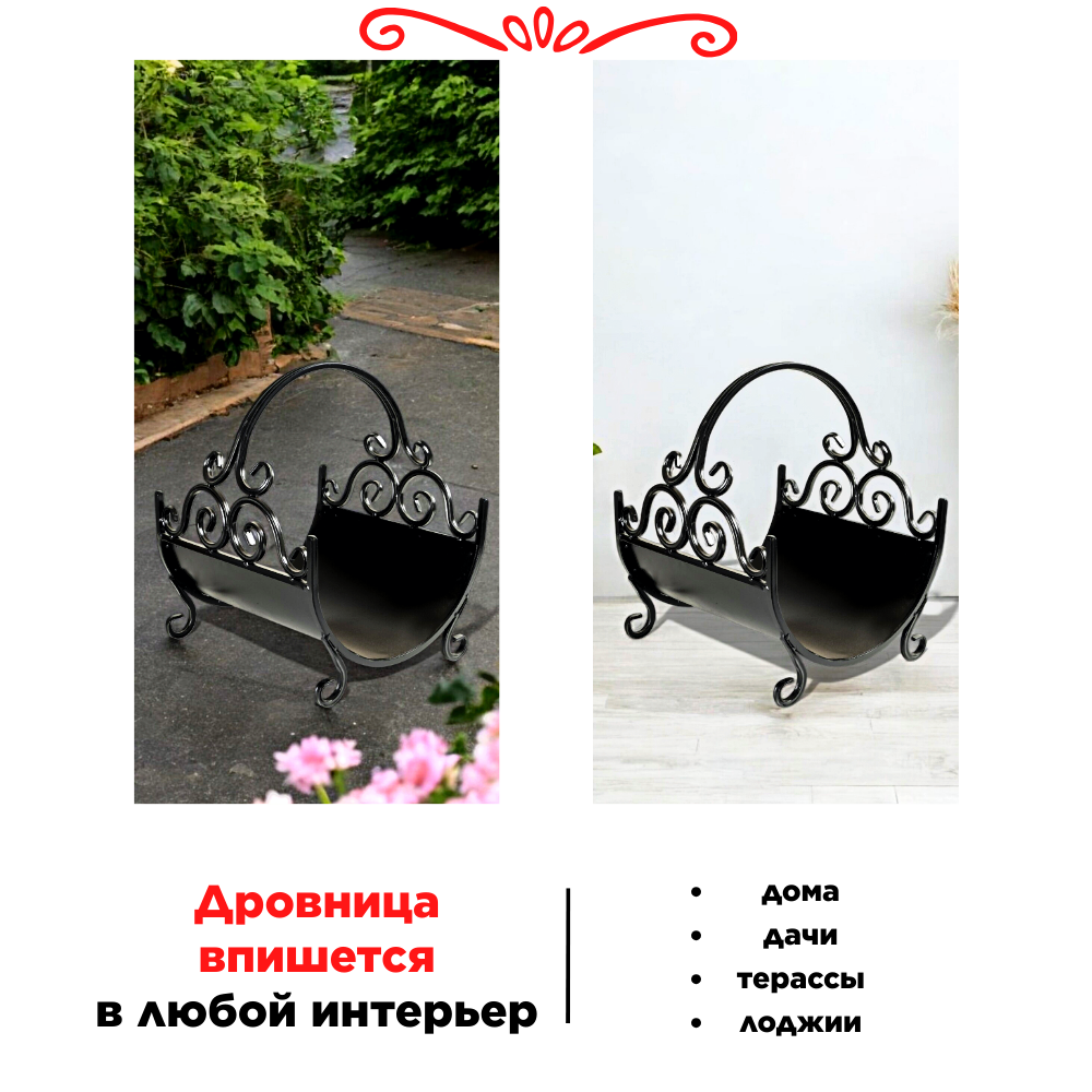 Металлическая кованая дровница для камина и бани под дрова для дома и улицы, цвет черный, 33х35х41 см