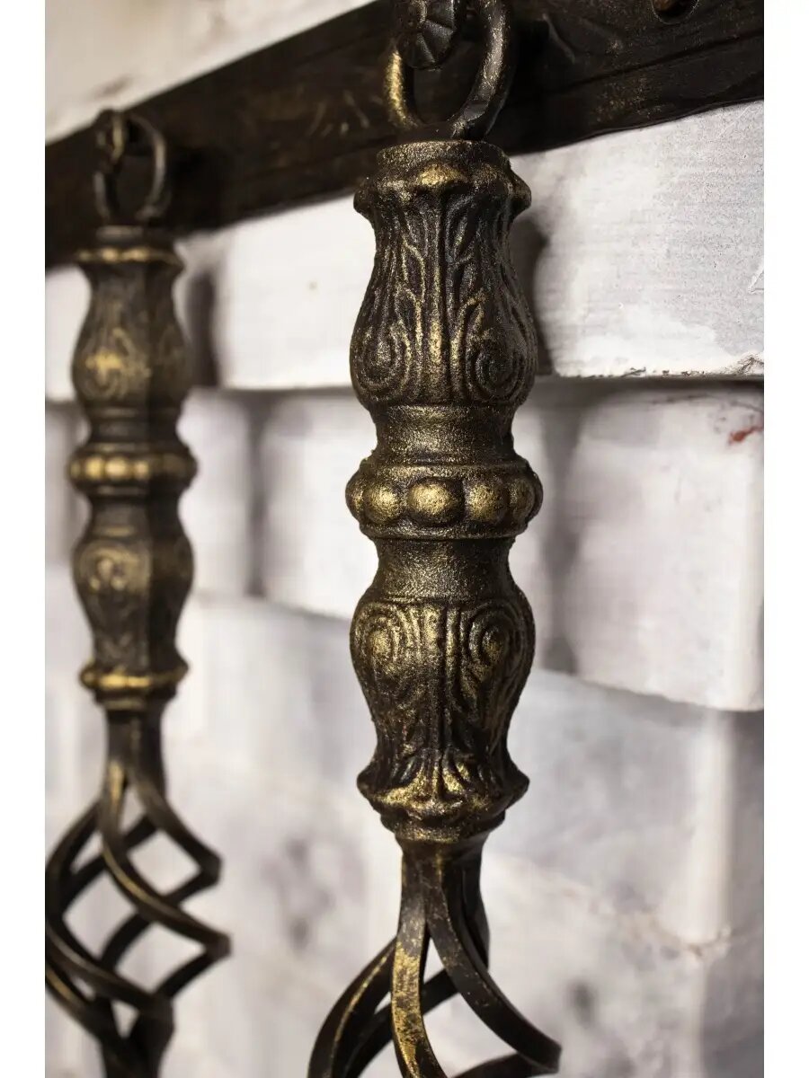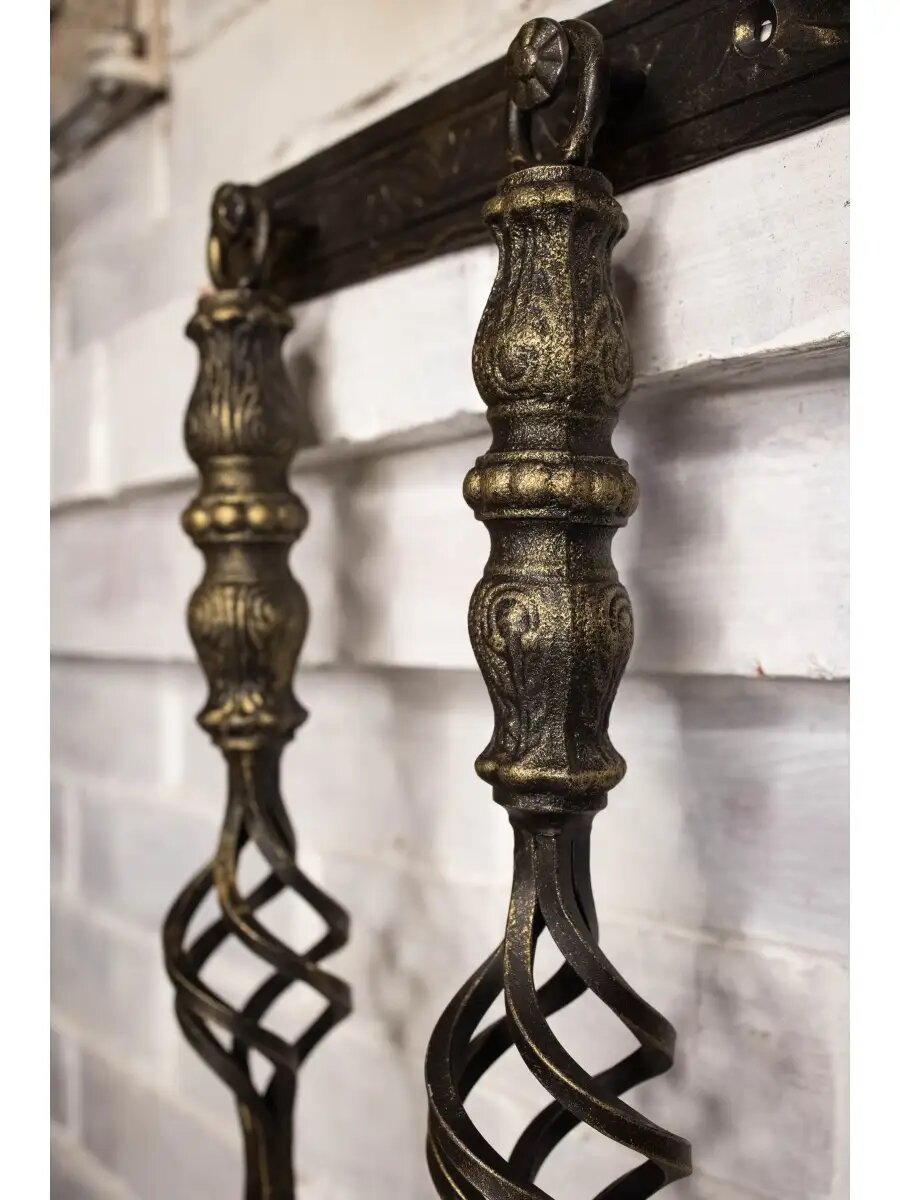Не определен Набор кованый для камина "Орел" подвесной (черный/бронза, металл, лопатка, кочерга, щетка) 59448