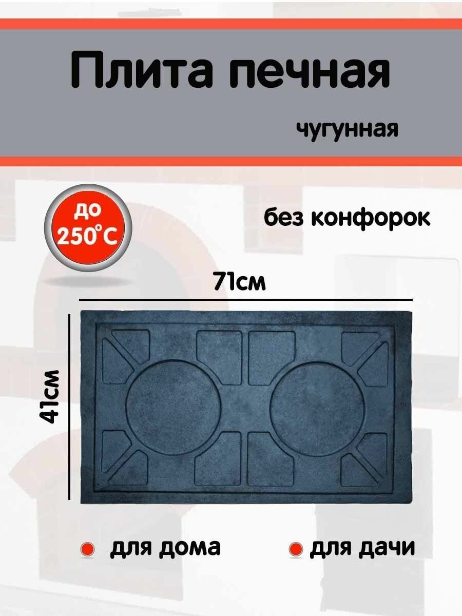 Плита печная большая двухконфорочная чугун литье 710х410х15 мм 23кг Иркутск
