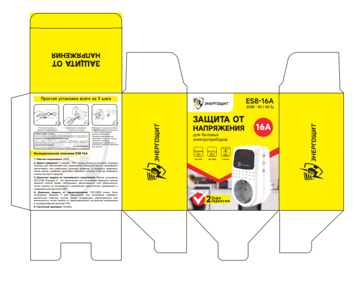 Реле напряжения в розетку Энергощит 16A 220В для защиты от напряжения и тока интересное: