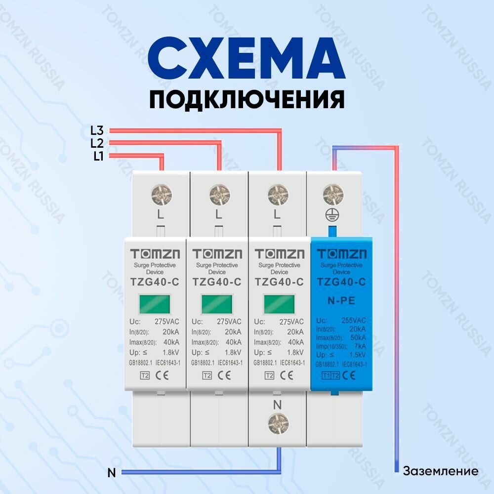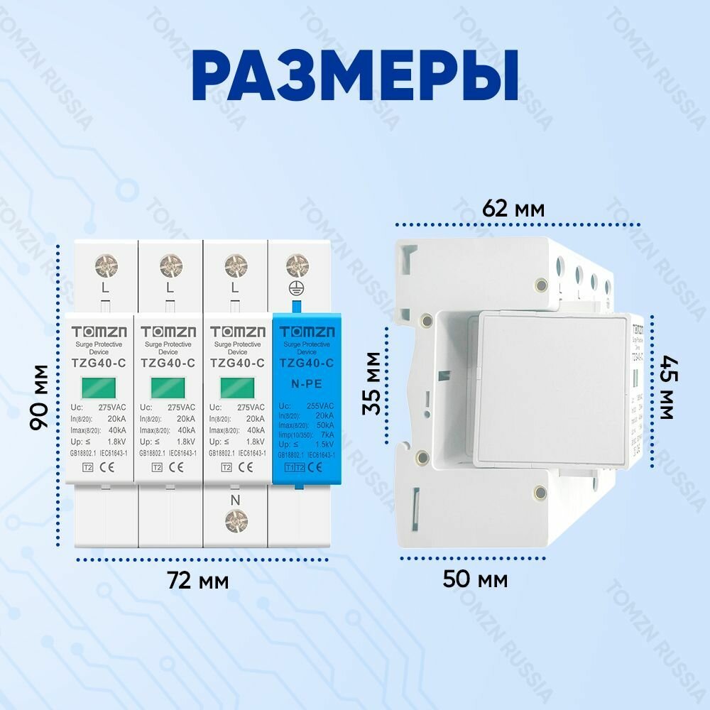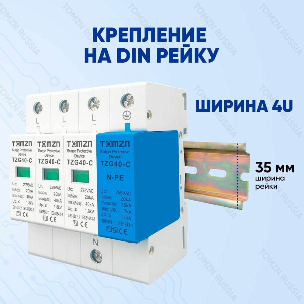 Устройство защиты от импульсных перенапряжений УЗИП TOMZN TZG40-C 3P+NPE 20-40 кА 275 В интересное: