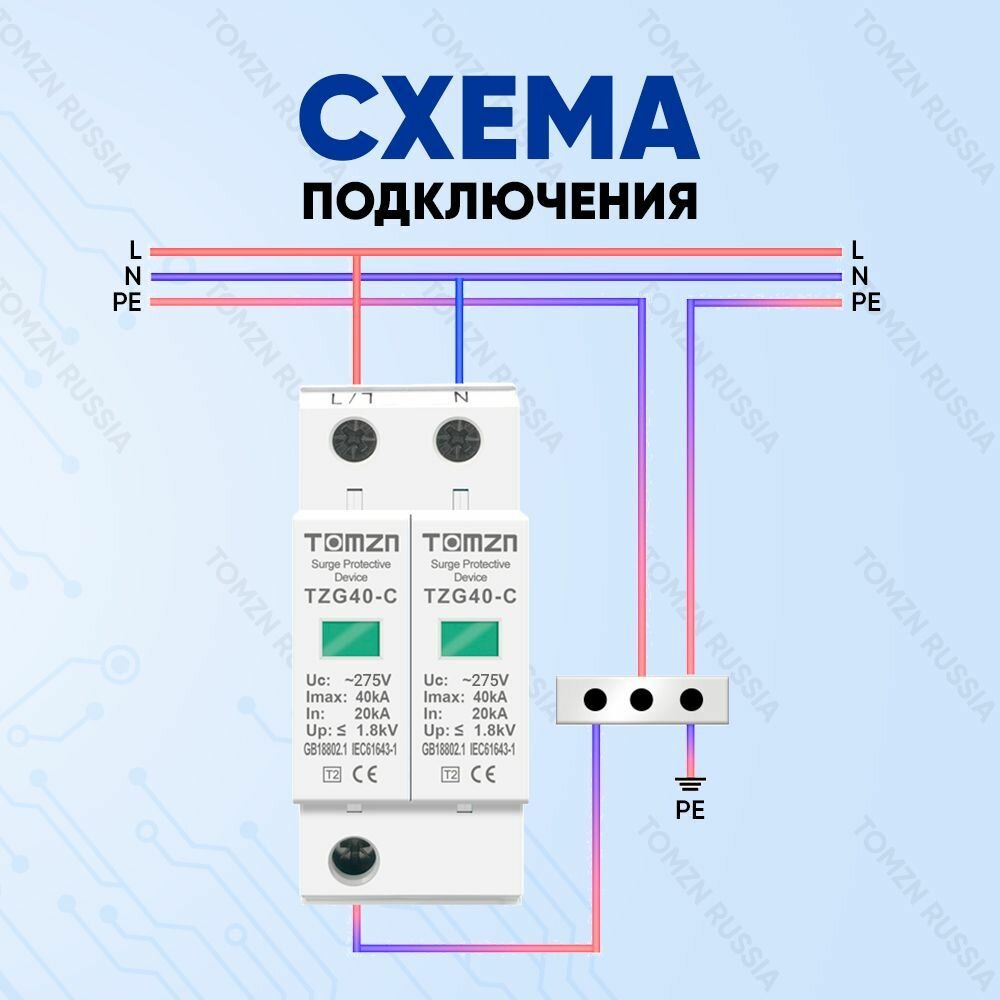 Ниже Вы можете прочитать отзывы на Устройство защиты от импульсных перенапряжений УЗИП TOMZN TZG40-C 2P 20-40 кА 275 В, ознакомится с подробными характеристиками, посмотреть интересные обзоры и фотографии на Устройство защиты от импульсных перенапряжений УЗИП TOMZN TZG40-C 2P 20-40 кА 275 В.
