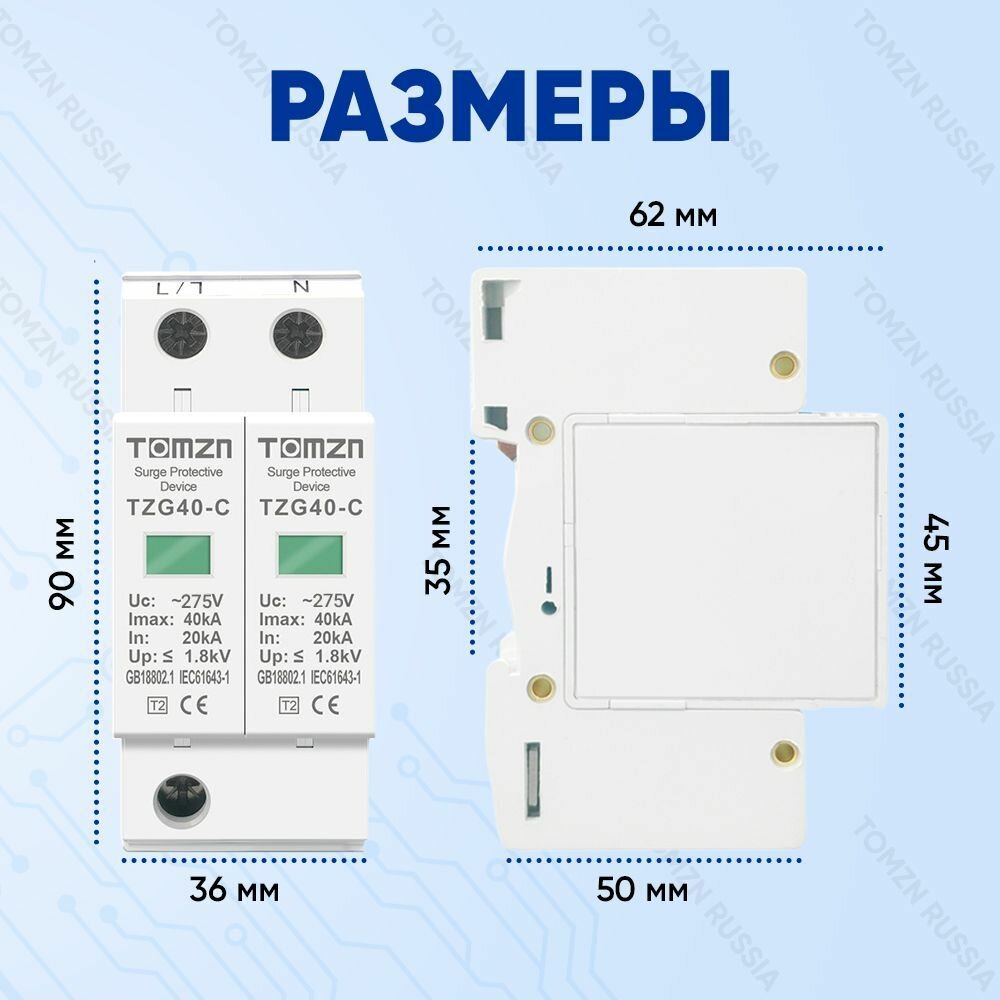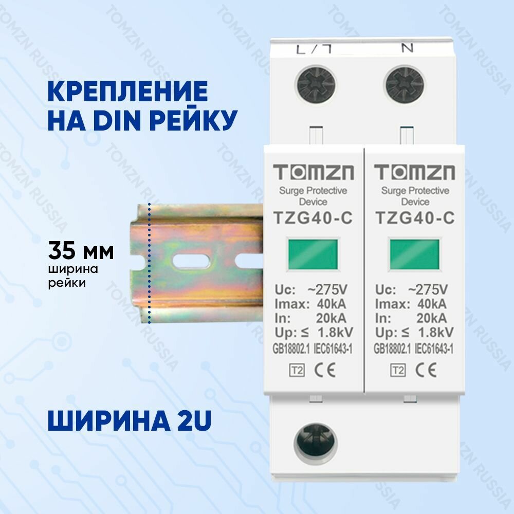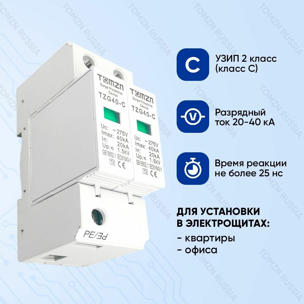 Устройство защиты от импульсных перенапряжений УЗИП TOMZN TZG40-C 2P 20-40 кА 275 В интересное:
