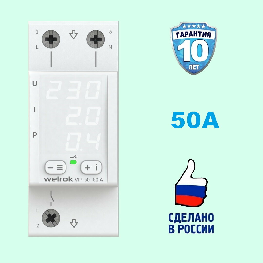 Welrok VIP-50 Реле напряжения с контролем тока 50 А (max 60 A), 11 000 ВА