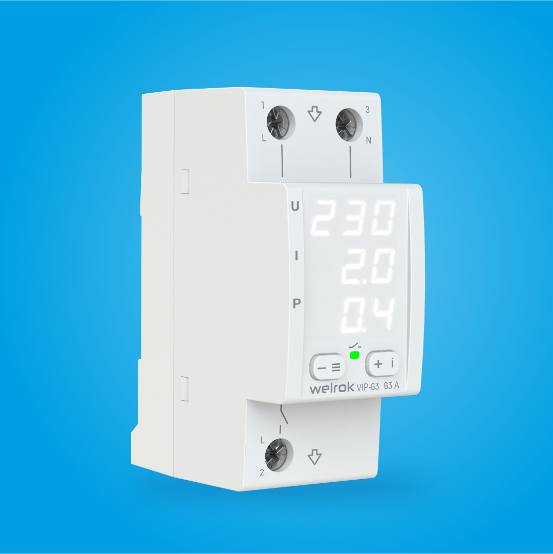 Welrok VIP-63 Многофункциональное реле с контролем напряжения, тока и мощности, 63А