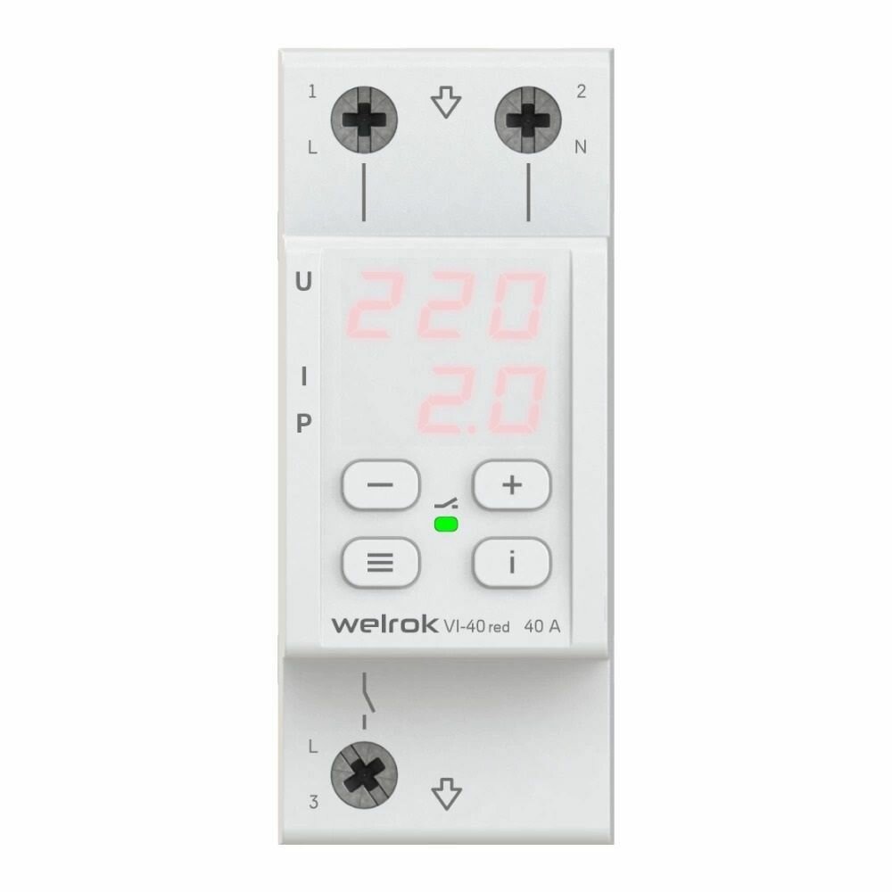Welrok реле напряжения и тока VI-40 red 1ф 40A 2 мод., красная инд, термозащита