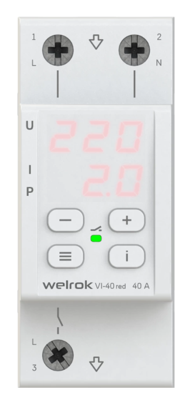 Welrok реле напряжения и тока VI-40 red 1ф 40A 2 мод., красная инд, термозащита