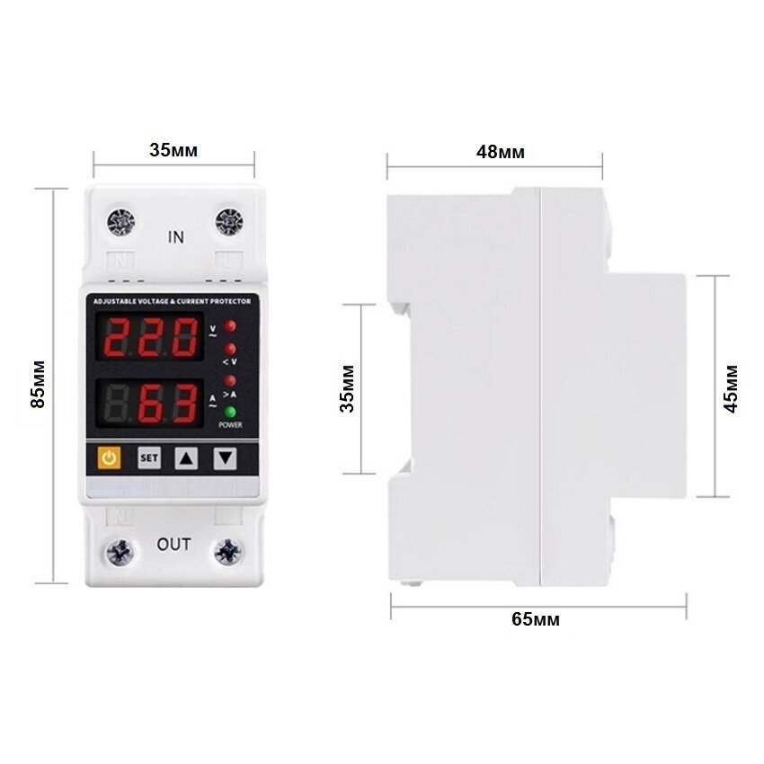 Реле напряжения TVPS1-63P 220В-230В цифровое с защитой от перегрузки по току и счетчиком электроэнергии
