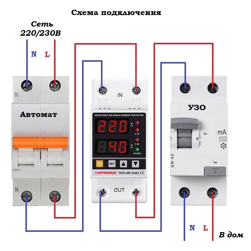 Реле напряжения TVPS1-40C 220В-230В цифровое с защитой от перегрузки по току интересное: