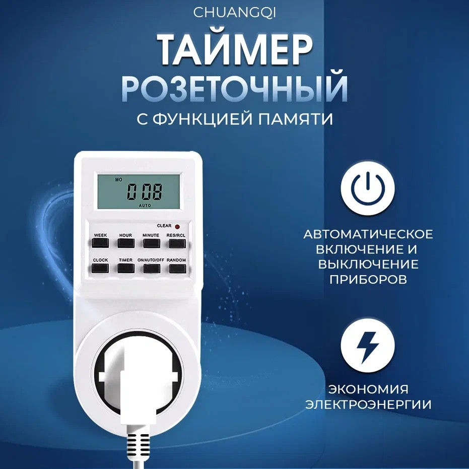 Таймер розеточный Chuangqi с функцией памяти, 16А, 230В, 3680 Вт интересное: