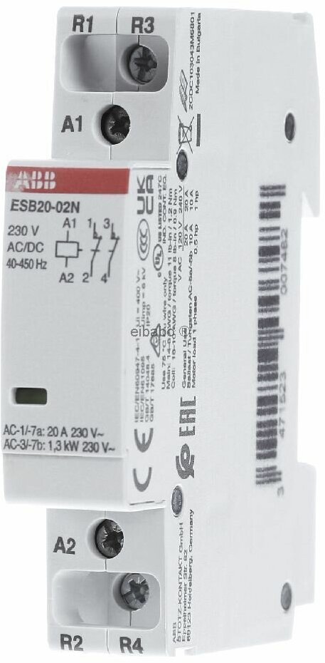 Модульный контактор ESB 20-02N-06 0НО 2NC 220B AC DC ABB 1SBE121111R0602 интересное: