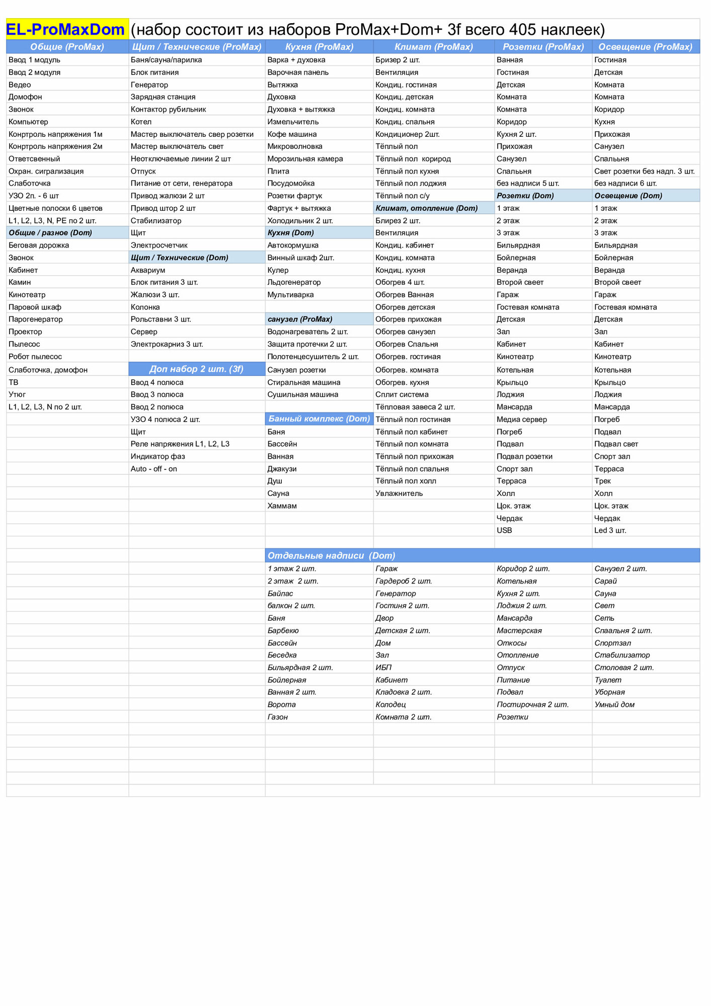 Набор наклеек для электрических автоматов в квартире и доме ProMax+ 3F