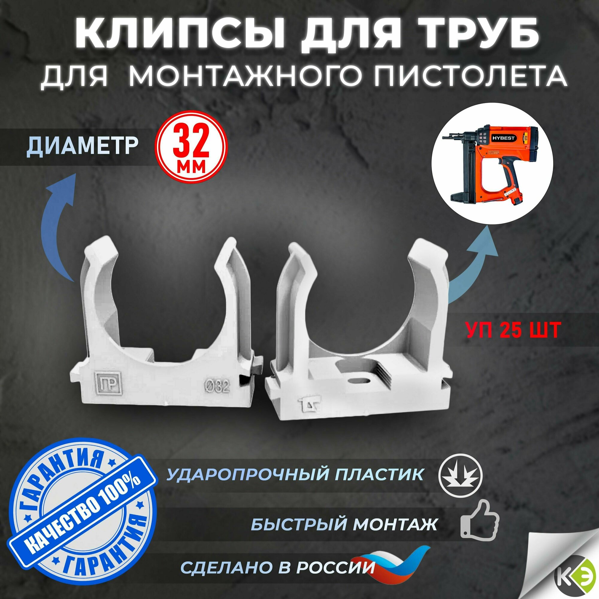 Крепеж-клипса для труб d 32 мм 25 шт для монтажного пистолета пластиковая, черная Промрукав