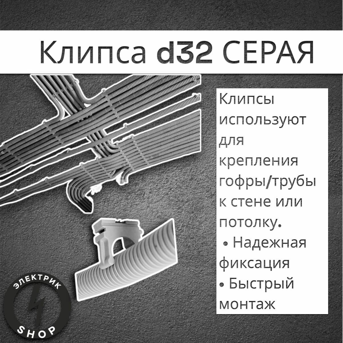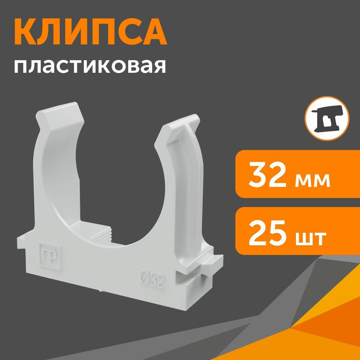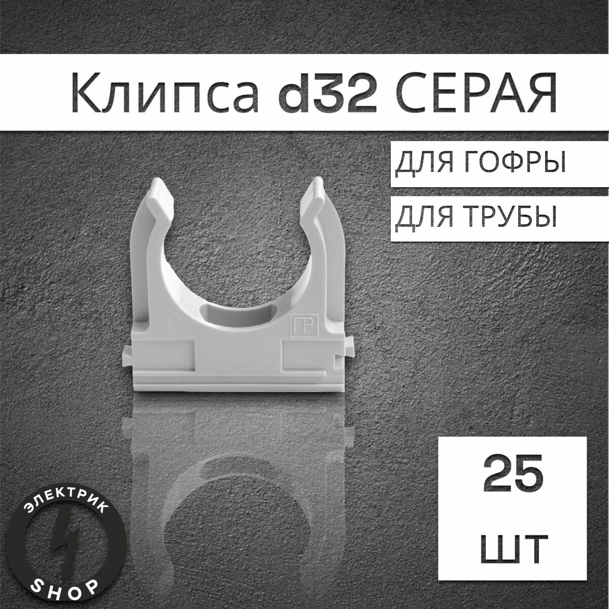 Крепеж-клипса для труб для монтажного пистолета серая в п/э д32 (25шт/500шт уп/кор) Промрукав