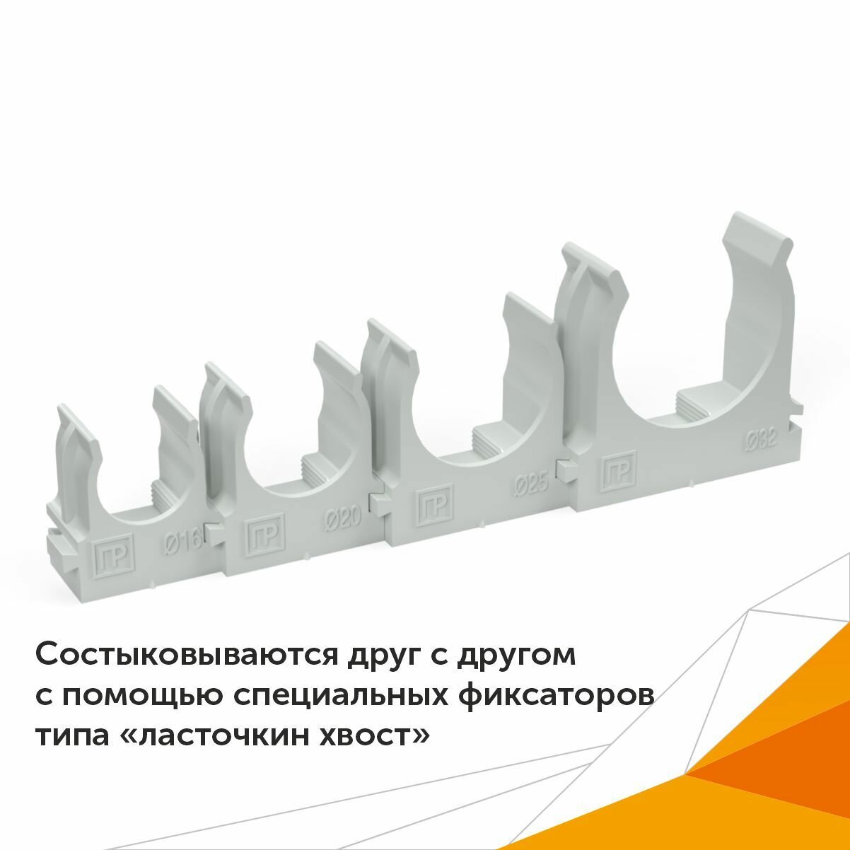 Промрукав Крепеж-клипса для труб для прямого монтажа серая в п/э д20 100ш PR13.0120