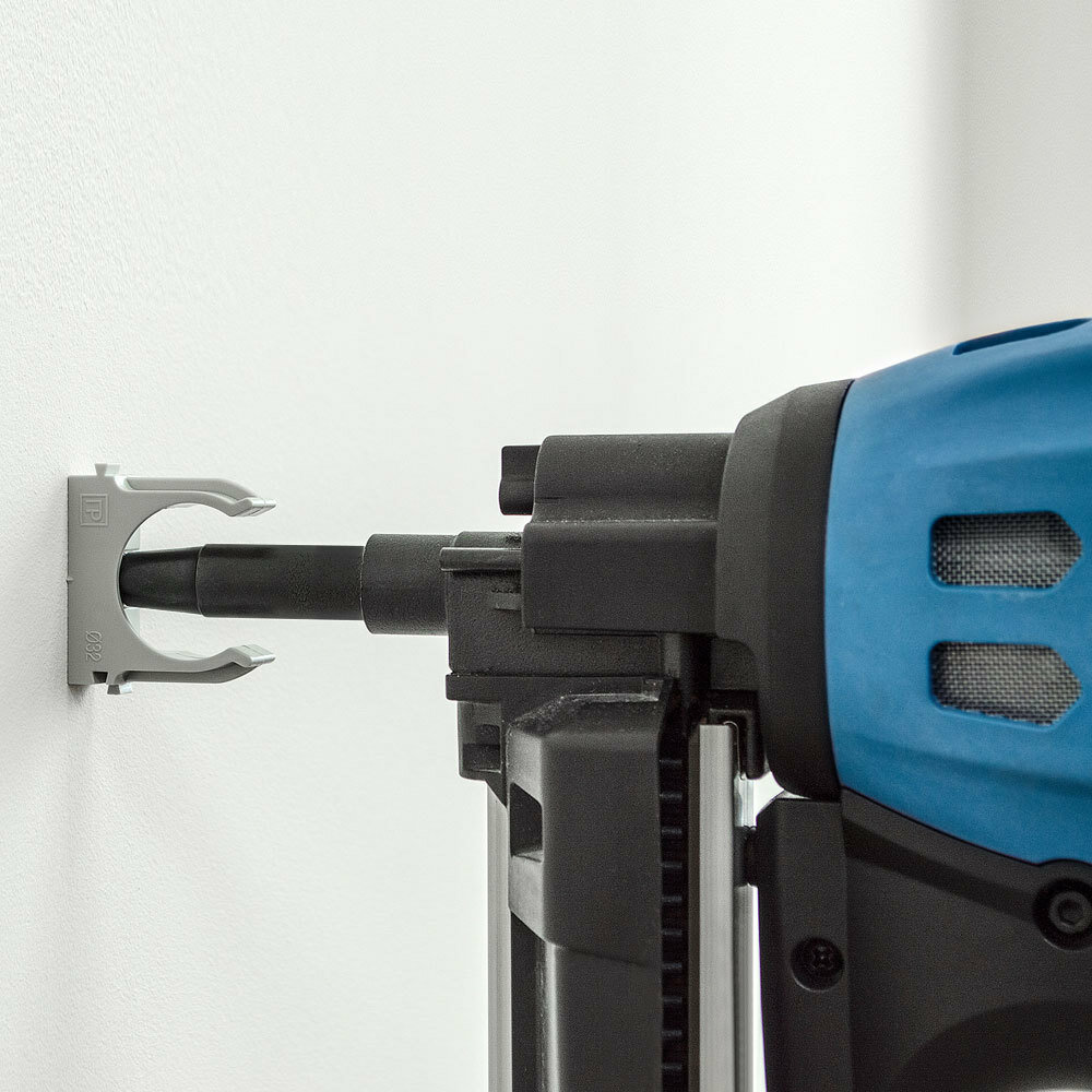 Крепеж-клипса для труб d 25 мм 100 шт для монтажного пистолета пластиковая, синяя Промрукав