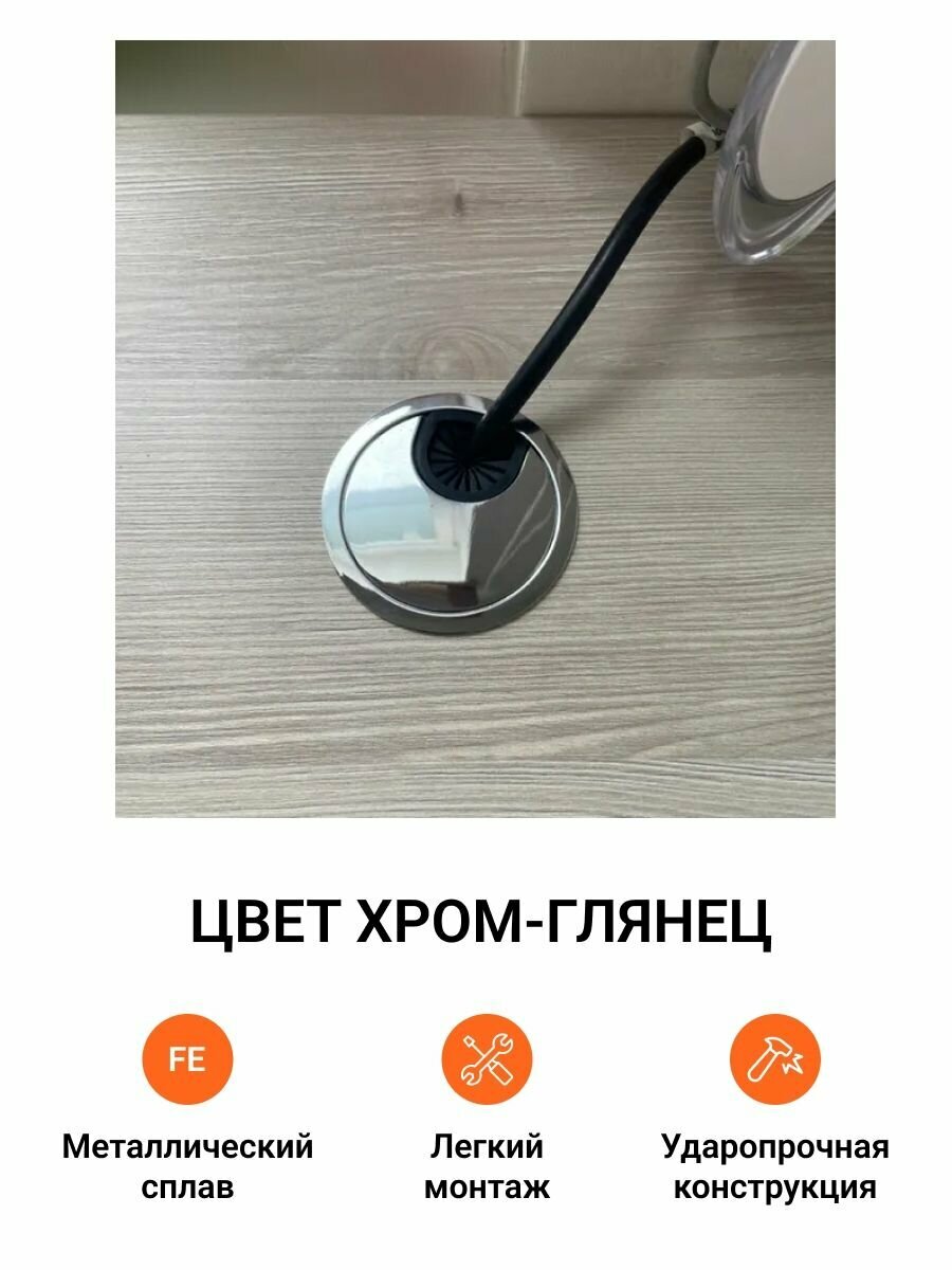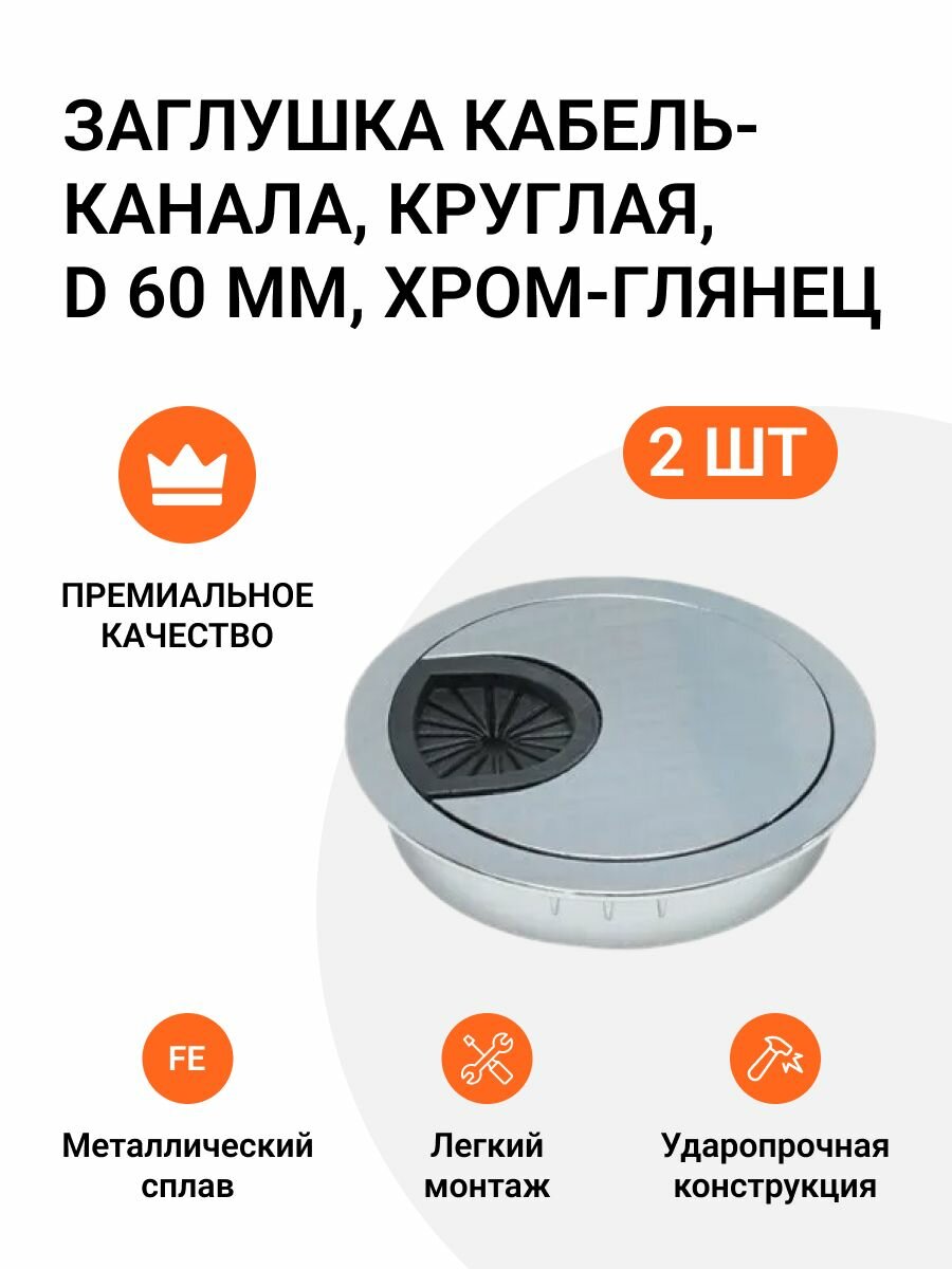Заглушка кабель-канала круглая D 60 мм хром глянцевый 2 шт интересное:
