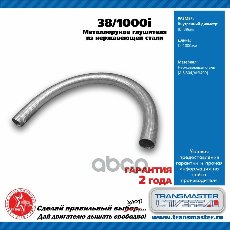 Рукав Нерж.металлический Гибкий 38/1000I TRANSMASTER UNIVERSAL арт. 38/1000I интересное: