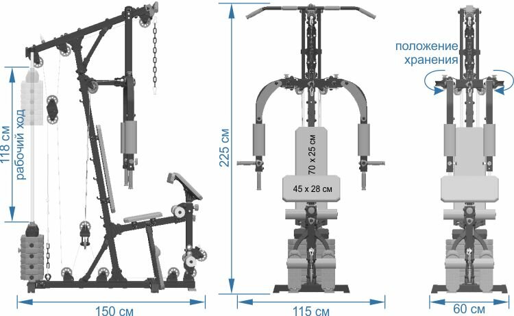 | Вид тренажера | силовая рама |