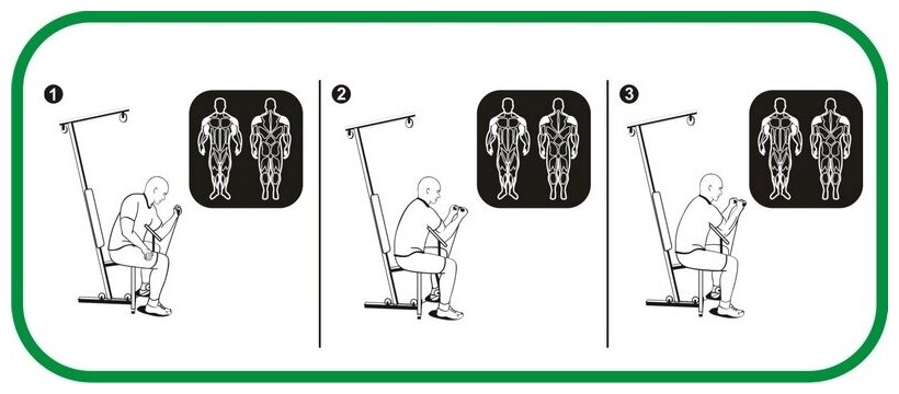 | Упражнения | верхняя тяга / горизонтальная тяга / жим ногами / жим от груди / жим от плеч / нижняя тяга / разведение рук / сгибание ног |